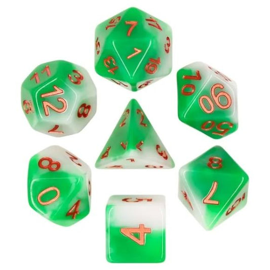A 7 pcs Polyhedral dice set used for Dungeons and Dragons, MTG , RPG Games etc. The dice included are 1- D4,1- D6,1- D8,1- D10,1- D00,1- D12, and 1- D20